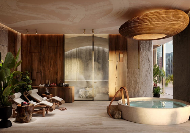 The branded residences range from one- to four-bedroom units, including duplex penthouses with rooftop pools and private balconies.